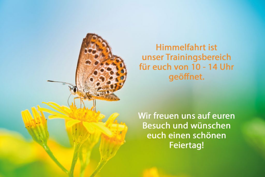 Am Donnerstag, 29. Mai ist unser Trainingsbereich für euch von 10 – 14 Uhr geöffnet.